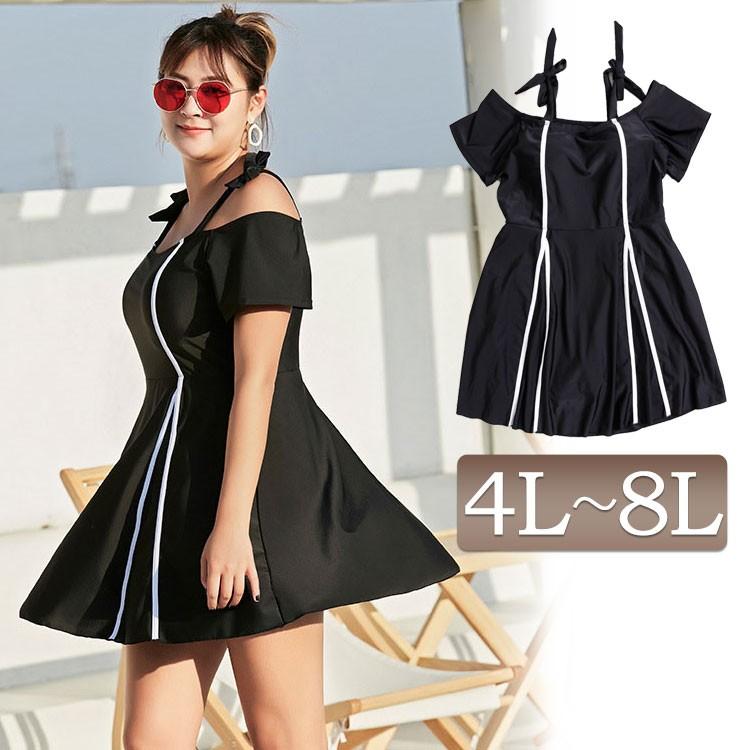 大きいサイズ レディース レディス 水着 ワンピース オフショル パッド ストレッチ ビキニ リボン フレア バイカラー 半袖 4l 5l 6l 7l 8l ブラック 夏 海 Jpsml 大きいサイズワンピース問屋 通販 Yahoo ショッピング